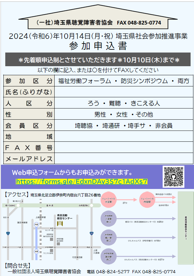 新座市聴覚障害者協会より情報提供です。