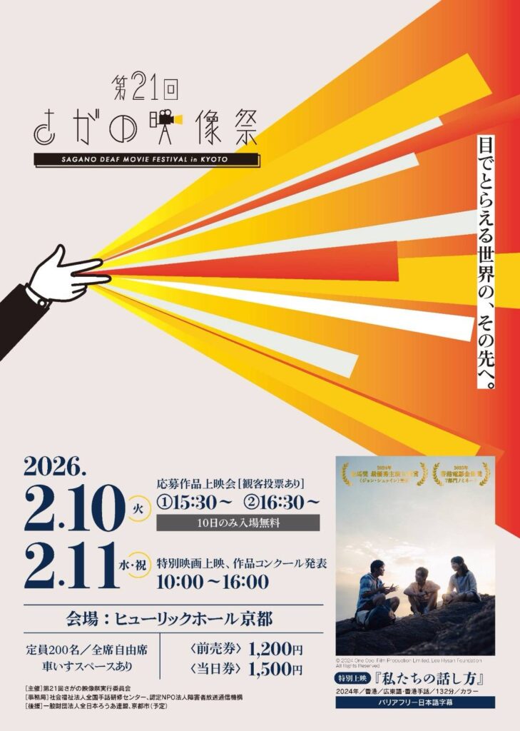 新座市聴覚障害者協会より情報提供です。 ● 第21回 さがの映像祭 埼玉県聴覚障害者協会からの情報です。 社会福祉法人全国手話研修センターからのご案内になります。 -